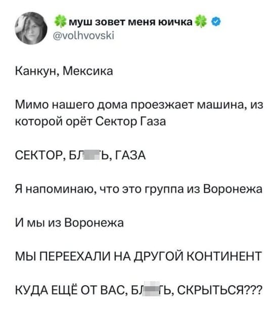 — Как он может уехать заграницу, когда он уже там!