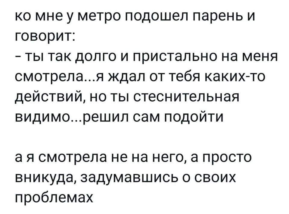 Если тебе понравился молодой человек, нужно просто подойти к нему и сказать: «Молодой человек, вы мне понравились». И всё, теперь это его проблема, а не твоя. Сам понравился, сам пусть и выпутывается.