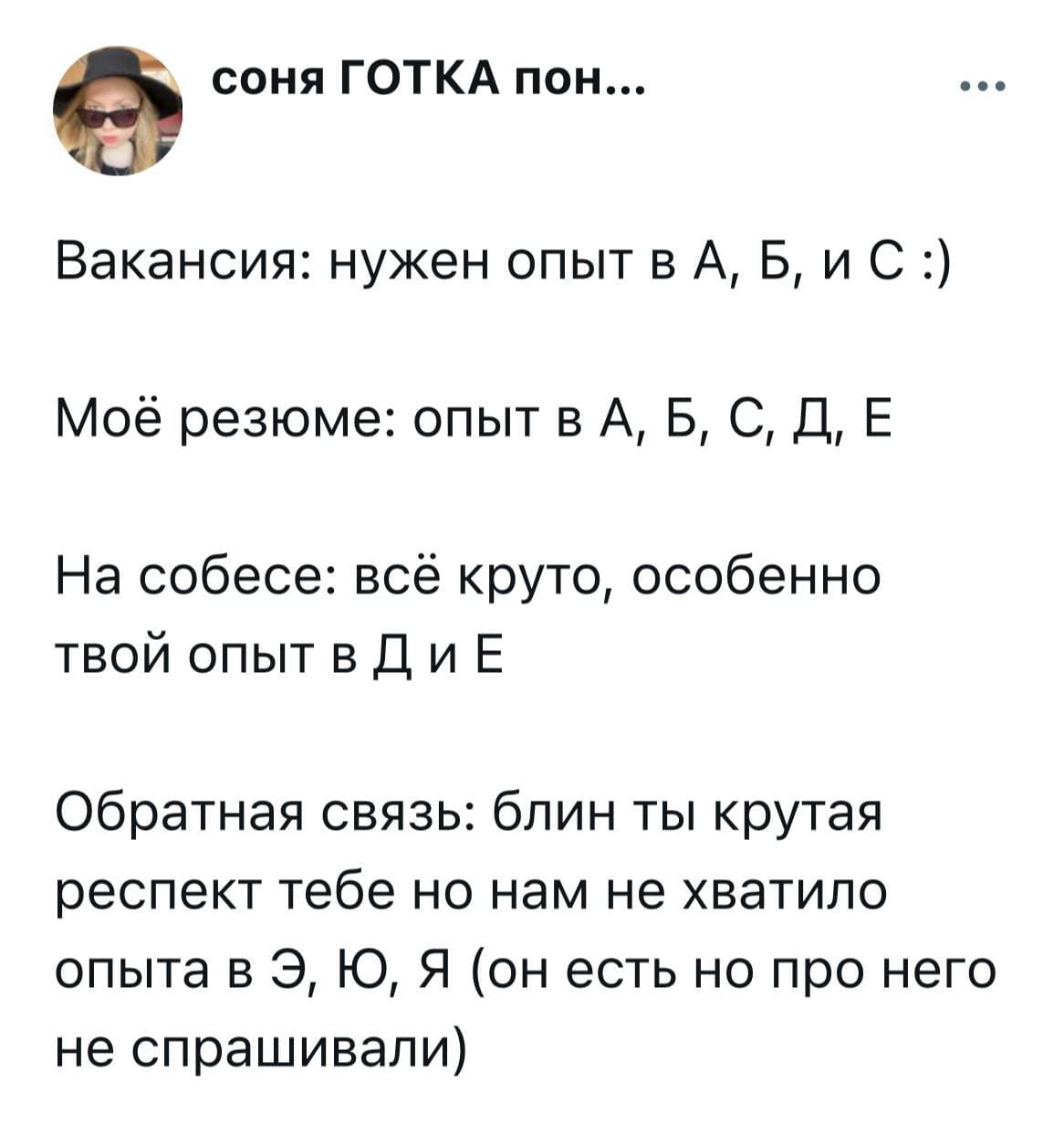 Вакансии выглядят так: требуется девственник с двумя годами опыта в сексе.