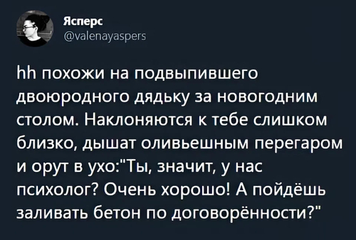 — Если вакансия дошла до службы занятости, то убедить вменяемого человека занять её обычный психолог не сможет, тут нужен гипнотизёр.