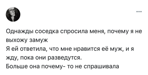 — Ну ты даёшь, такая симпатичная молодая девушка и молодого человека нет... Как вообще такое может быть!?