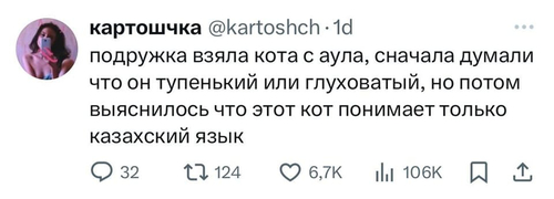 — Интересно, почему украинцы пишут в «Вконтакте» на украинском языке? А, например, казахи этого не делают?