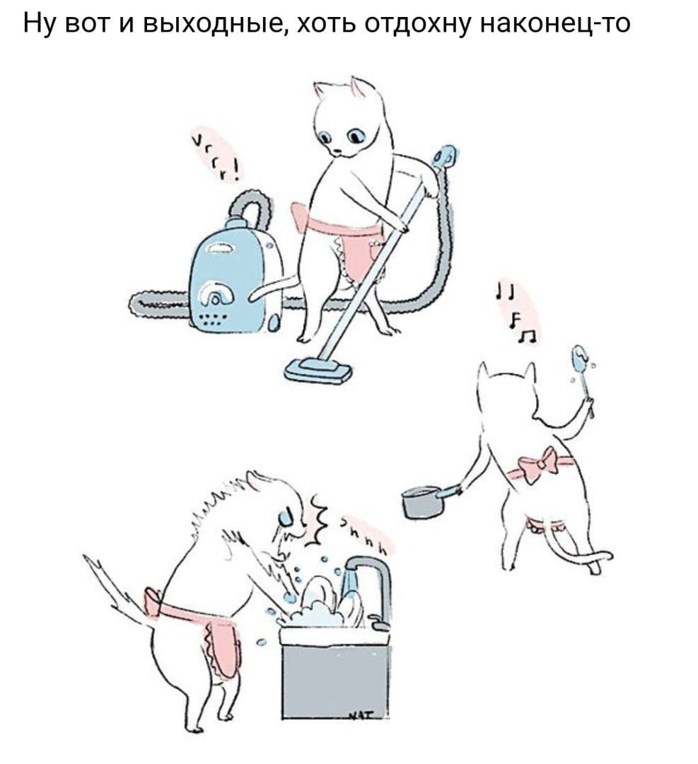 Домашние дела в выходные придумали для того, чтобы в понедельник веселее бежать на работу.