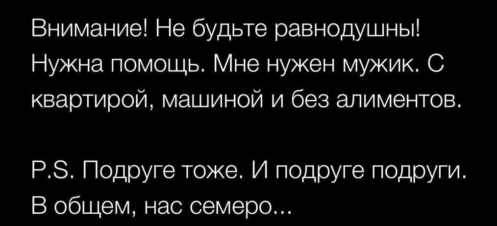 — Почему девушка, с которой ты уже на протяжении довольно долгого времени встречаешься и с которой у тебя вроде как всё серьёзно, не выкладывает ваши совместные с ней фотографии на всеобщее обозрение у себя на страницах в соцсетях? Не от того что счастье любит тишину, вовсе нет. Просто она не хочет терять запасные варианты.