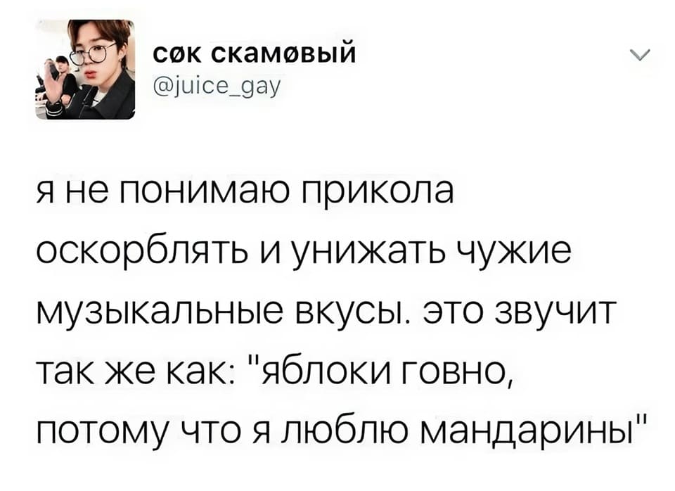 — Как по мне, музыка действительно имеет такое свойство, как — объединять окружающих людей, но это совершенно не распространяется на соседей и водителя маршрутки с его пассажирами.