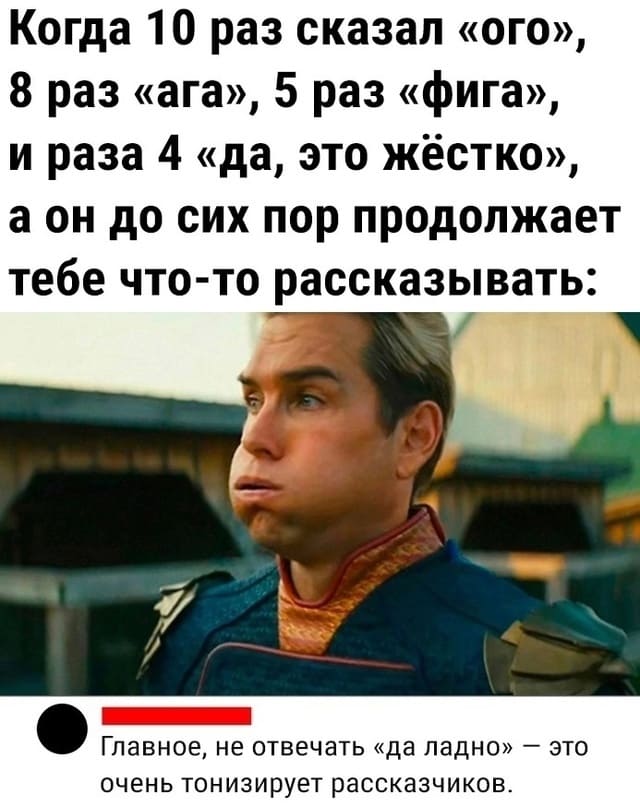 Вообще очень дисциплинирует, когда молча, не перебивая, выслушиваешь до конца человека, чьё мнение ты в рот еб...л.