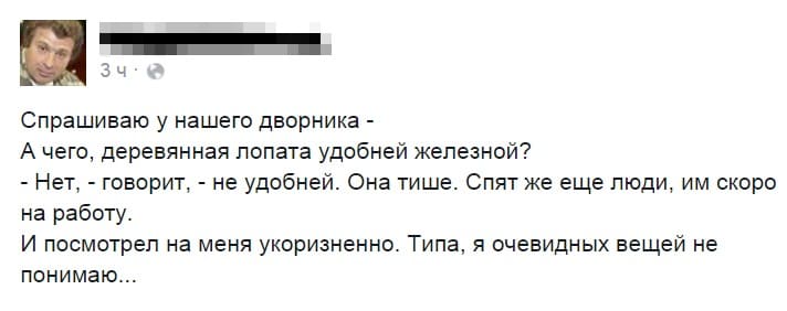 Хотелось бы выразить благодарность тем людям, кто встаёт на работу в 6 утра и прокладывает дорожки в сугробах тем, кто встаёт в 8-9. Вы герои!