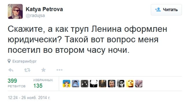 — Представьте себе, видел. И вы даже не поверите. Стою я в очереди, вдруг подходит человек в штатском, отводит меня в сторону и говорит, что их учёные только что совершили чудо и смогли оживить Ленина, и что он хочет поговорить с кем-нибудь из толпы. И они выбрали меня для этой цели.