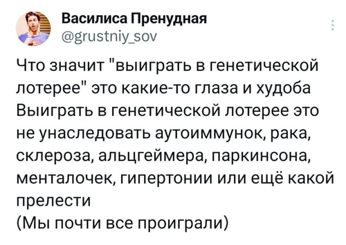 Отдельно взятому человеку может вести всегда, везде и во всем на протяжении всей его жизни, но в один из дней, ему обязательно не повезет — он умрёт...