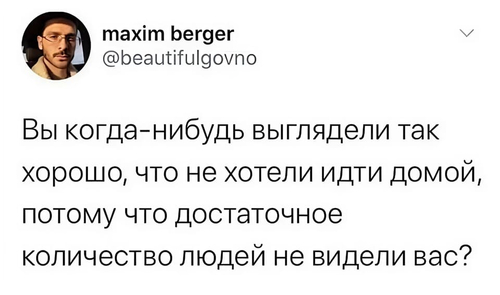 Мужчина должен выглядеть так, чтобы кроме тебя никто с ним спать не хотел.