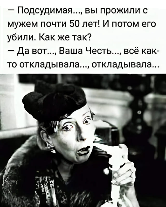 — Потpясающе, – вдpуг восклицает она. — Один мужчина днём познакомился с женщиной, вечеpом женился на ней, а на следующее утpо убил её!