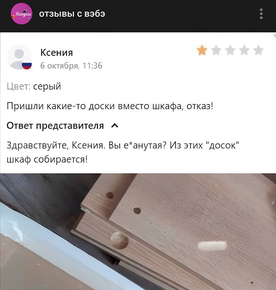 "Просьба к руководству, разобраться с девушкой, которая стоит на кассе. Вертела своим глубоким декольте перед моим мужем. Явно хотела нас обсчитать."