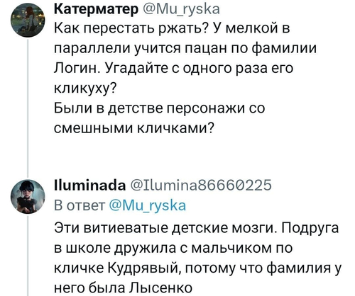 Когда учился в школе, у одного из моих одноклассников, кличка была — «Четырнадцатый», всё дело в том, что фамилия у него была — Фотин.