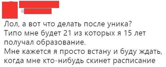 Получение диплома — это как отмена крепостного права в 1861 году. Ты вроде бы свободен, но не имеешь ни малейшего понятия о том, что теперь делать.