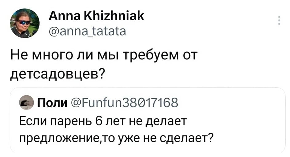 — Моя девушка наконец-то заговорила со мной о браке и серьёзных отношениях спустя три года после нашего с ней знакомства и общения.