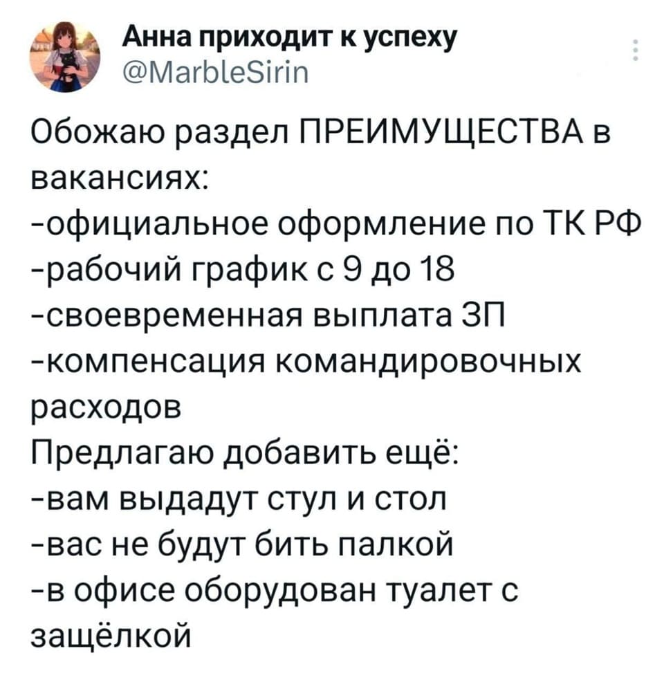 Как показывает практика, крайне трудно устроиться на работу своей мечты, когда твоя мечта — это больше никогда в своей жизни не работать...