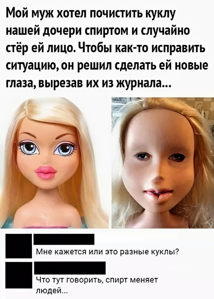 Реанимировали женщину и решила она, пока тут лечится, подправить себе внешность: увеличить грудь, губы подкачать, жир отсосать, разрез глаз изменить, нос подправить... когда выписывалась из больницы, на выходе её сбивает грузовик.