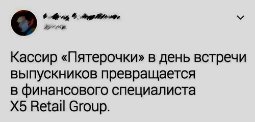 Кассир Пятёрочки в день встречи выпускников превращается в финансового специалиста Х5 Retail Group.