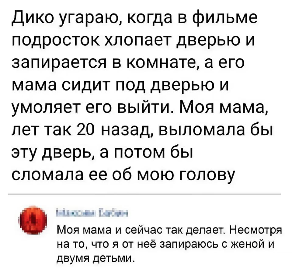 — Мама, ну хватит-таки уже по ночам укрывать меня одеялом!