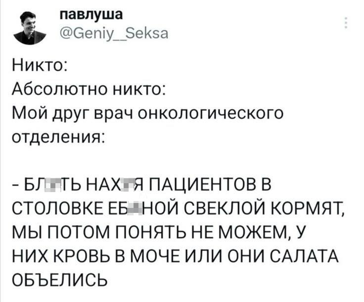— Петрович, ты с ума сошёл – в больничной палате духи пить? От тебя же на километр цветами нести будет!