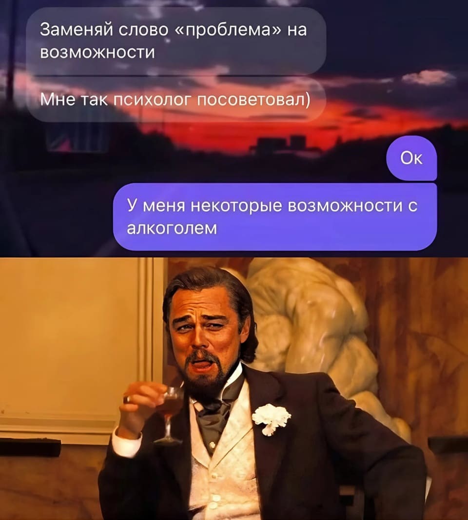 Мне врач рекомендовал пить спиртное только по тем дням, в которых есть буква «С» ... Ну-у это ... среда, суббота ... и ... сегодня!