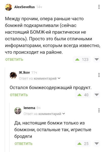 Те читают: «Смотрю дымок идёт из сарая. думаю пожар. Беру два ведра с водой и иду тушить. Прихожу, а там два мента самогон варят.»