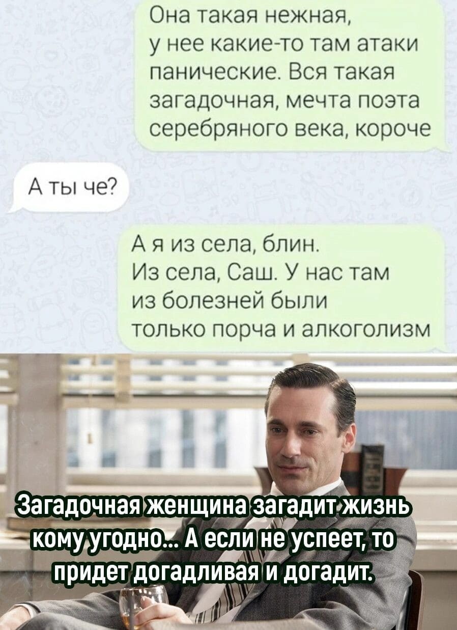 — Мужики простые. Посылаешь нах*й — получаешь по еб*лу, даришь цветы — получаешь по еб*лу.
