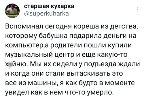 — Нет ничего крепче маминого молока. Я до сих пор не помню первые годы жизни.