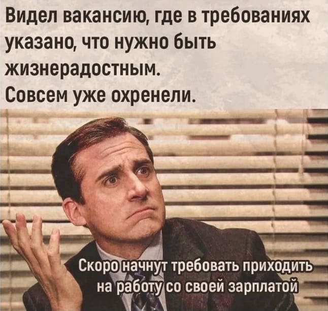 «На постоянную работу в крупную компанию требуются люди с наличием ярковыраженной аллергии на деньги».