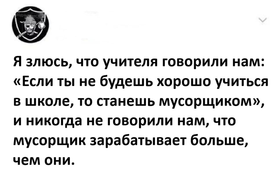 Статистика: те, кто в 9 классе мешали пиво с водкой, после 11 класса мешают бетон.