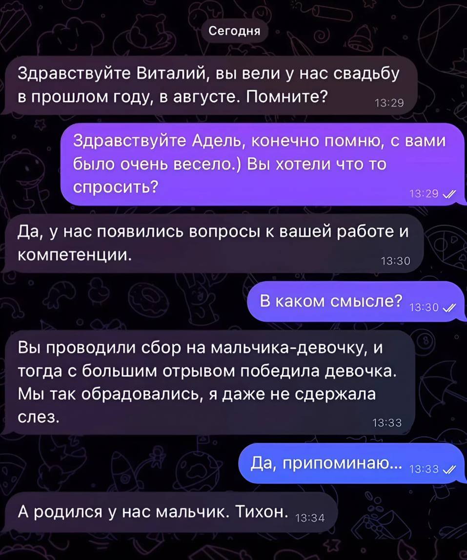 — Хорошо. А какого пола хотите малыша?