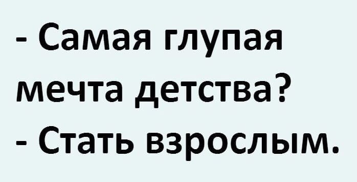 Взрослая жизнь — это когда родители больше не записывают тебя к врачу, в тот момент, когда у тебя, вдруг что-то заболело, да ты и сам не записываешься, а просто лежишь ждёшь пока умрёшь.