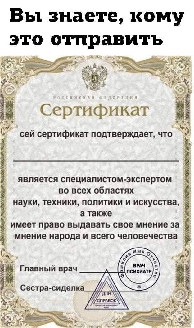 Вчера проходил медосмотр на замену водительского удостоверения. Психиатр на приёме спрашивает: