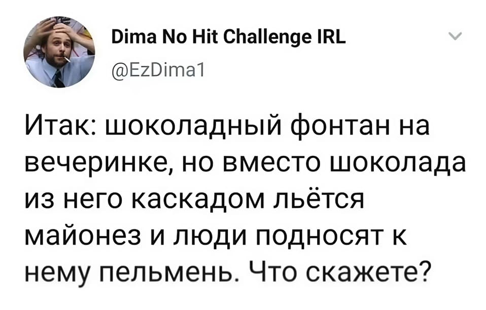— В последнее время, меня совершенно не устраивает качество магазинных пельменей. Вкусные и натуральные, я ем только в одном месте. В деревне у своей любимой тёти. Эти вкусные пельмени, она собственноручно лепит и кладёт их в морозильную камеру холодильника. Вот это настоящие пельмени! И скотина у них своя.