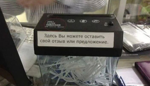 Начальник вставляет бумажку, и она исчезает в шредере: