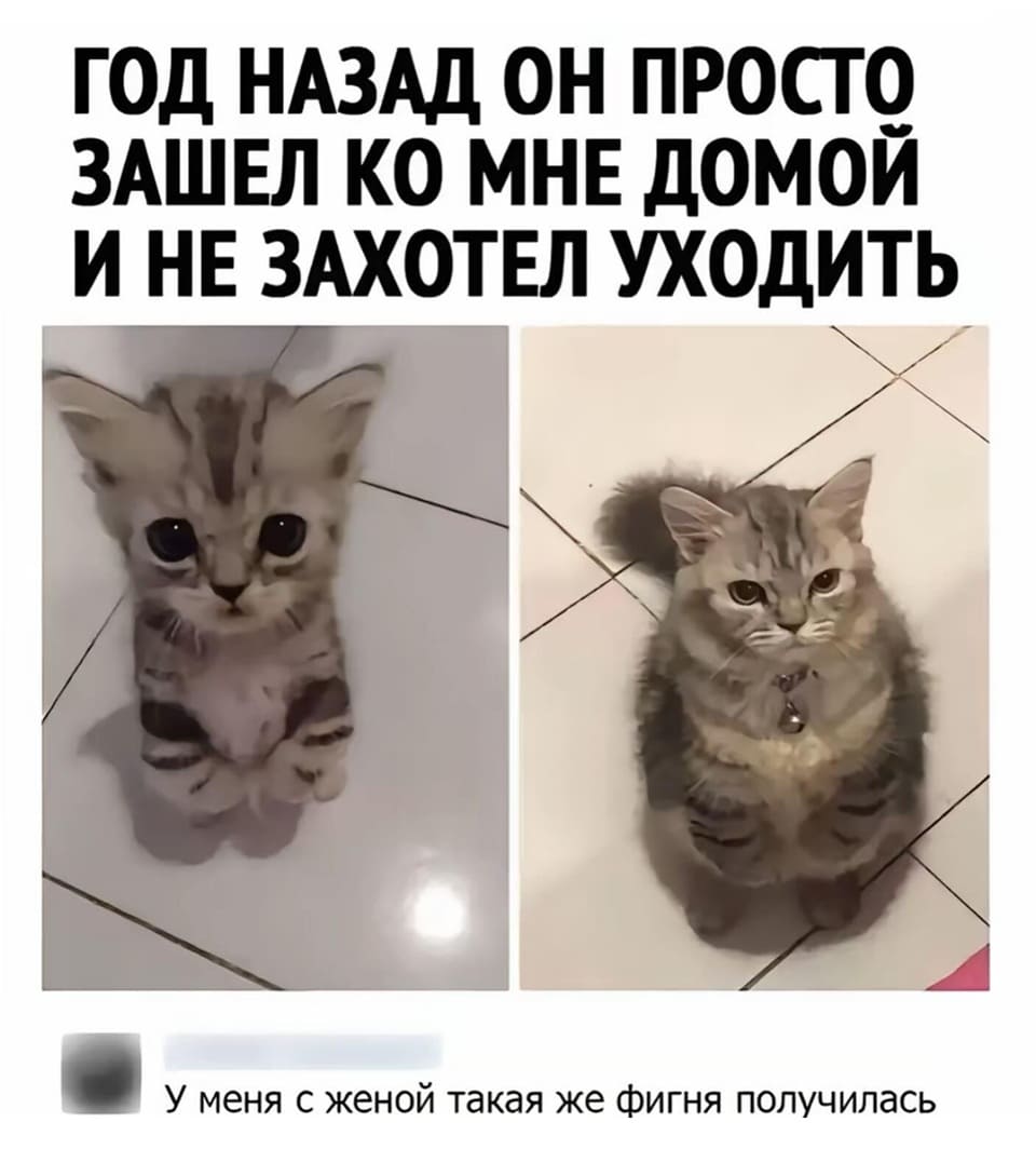 Муж вздыхает, встаёт, выкидывает из комнаты кота, закрывает дверь. Возвращается в постель и снова начинает приставать.