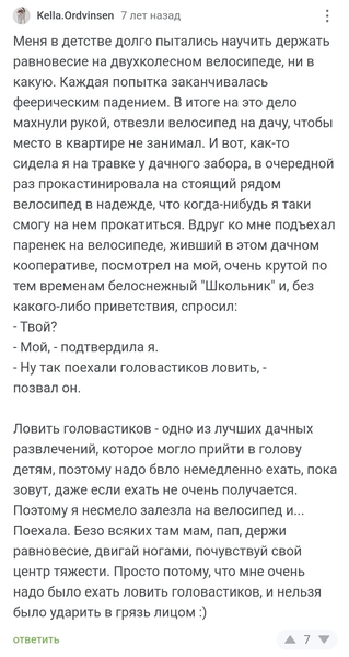 Помню как в детстве, я не хотел есть кашу, а бабушка тогда сказала мне, что если я съем кашу, то мы полетим как птицы. Я на радостях съел её и спросил когда полетим. В ответ бабушка развела руки в стороны и со словами "вжуух полетели" побежала по комнате. Я ревел час...