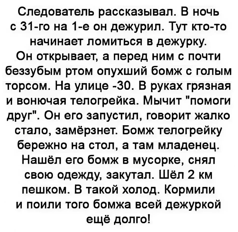 Зашёл в магазин за сигаретами, вышел — стою, открываю пачку, и ко мне подошла собака. Сидела смотрела на мою пачку, я достал сигарету, дал ей понюхать, а она взяла её аккуратно и отнесла своему бездомному хозяину. Теперь я ещё больше люблю собак.