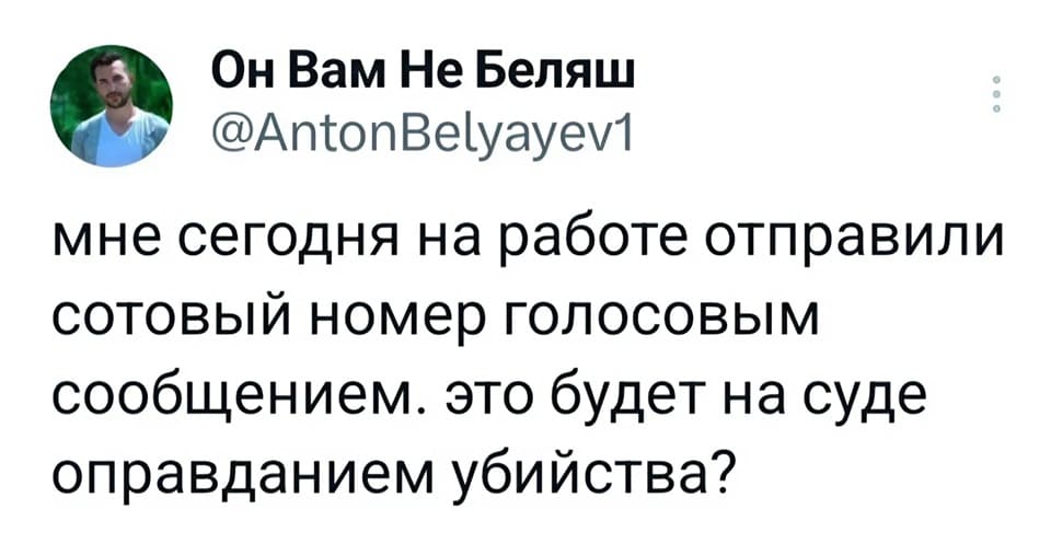 — Обвиняемый, объясните присяжным заседателям, почему вы убили свою жену вместо того, чтобы убить её любовника?