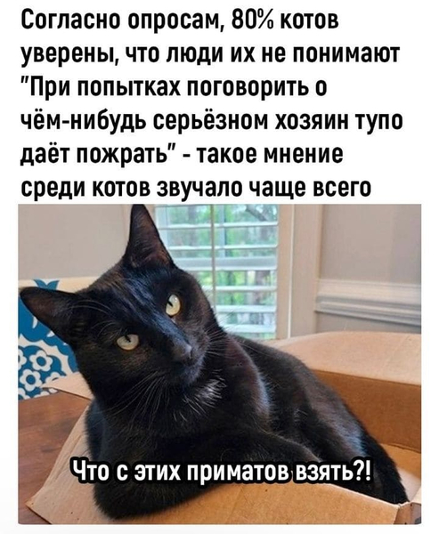 — Для того, чтобы нравиться абсолютно всем окружающим девушкам, необходимо быть умным, стройным, красивым, богатым и успешным... Ну, или просто — котом.