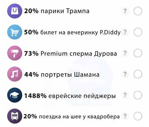 Это вы категории в "Колесо призов" от Яндекс маркета ещё не видели.