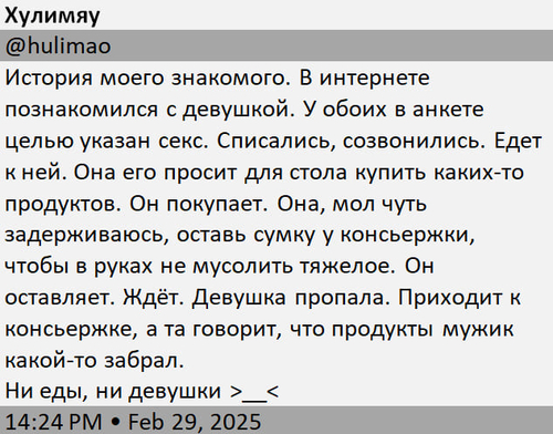— Парни, подскажите пожалуйста, какой вы знаете самый простой и действенный способ обмана и мошенничества в интернете?