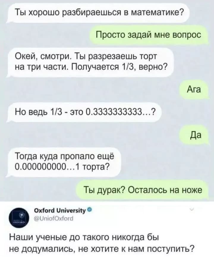 — Профессор, скажите, а вам высшая математика в обычной жизни хоть раз пригодилась?
