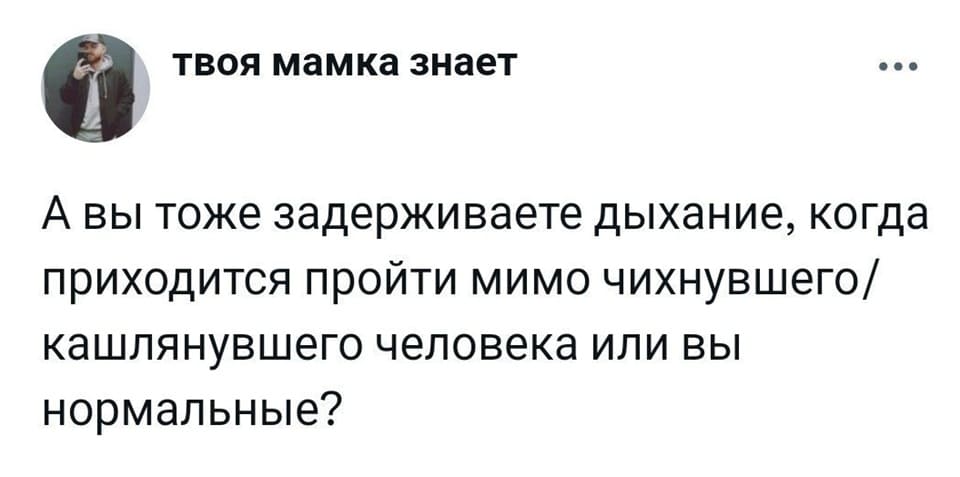 Тот самый неловкий момент, когда ты смеёшься над всеми этими шутками про коронавирус и в какую-то секунду, твой смех превращается в кашель.