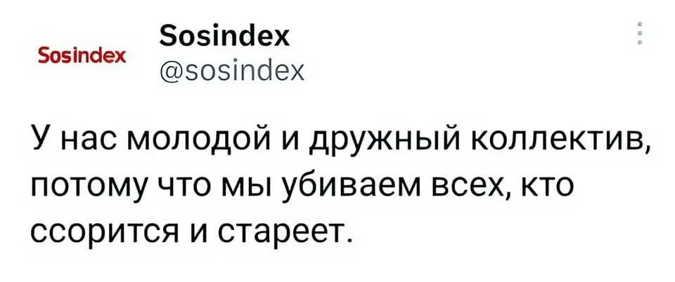 Как говорит наш шеф: Ценность нашего трудового коллектива в том, что из него невозможна утечка мозгов.
