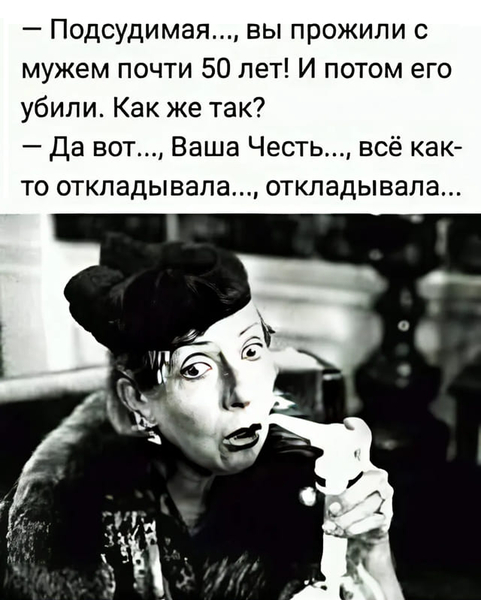 — Я рассудил, ваша честь, что гораздо разумнее убить одну женщину один раз, чем каждую неделю убивать по новому мужчине...