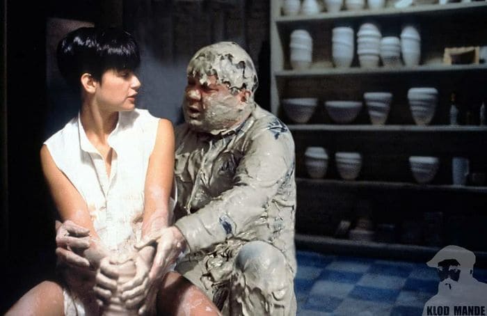 Вслед за ней, встает мужчина, снимает свою рубашку и швыряет её в сторону девушки со словами:
