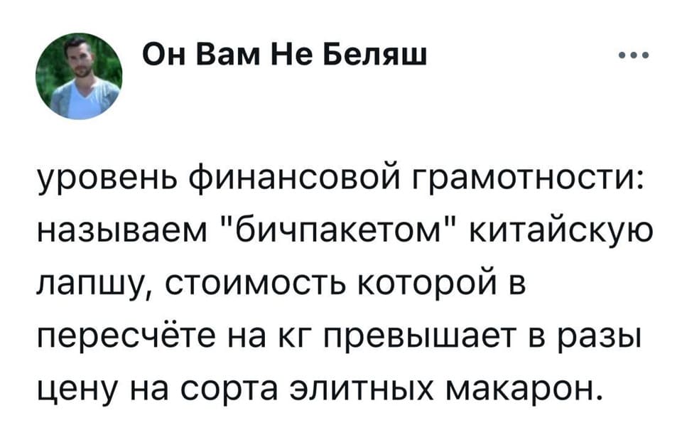 Как же вы уже достали - богатенькие мажоры. Доширак, он как бы дороже обычных макарон. Обычная упаковка макаронных изделий рассчитана на несколько раз, а доширак всего лишь на один. Задрали вы уже ныть. Если вы откладываете деньги на "IPhone", путём поглощения дошика, то спешу вас обрадовать тем, что вы успешный человек!