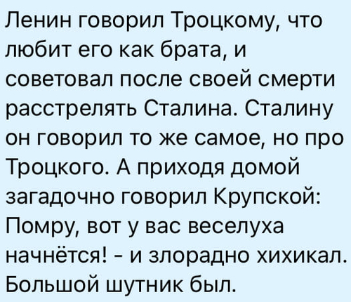 — Конечно же за политическое! Я сам по профессии — водопроводчик. И меня вызвали на собрание — чинить канализационные трубы. Я посмотрел на плачевное состояние этих труб и сказал: "Эй, да тут всю систему менять нужно!" - Вот за это, мне и дали 10 лет!