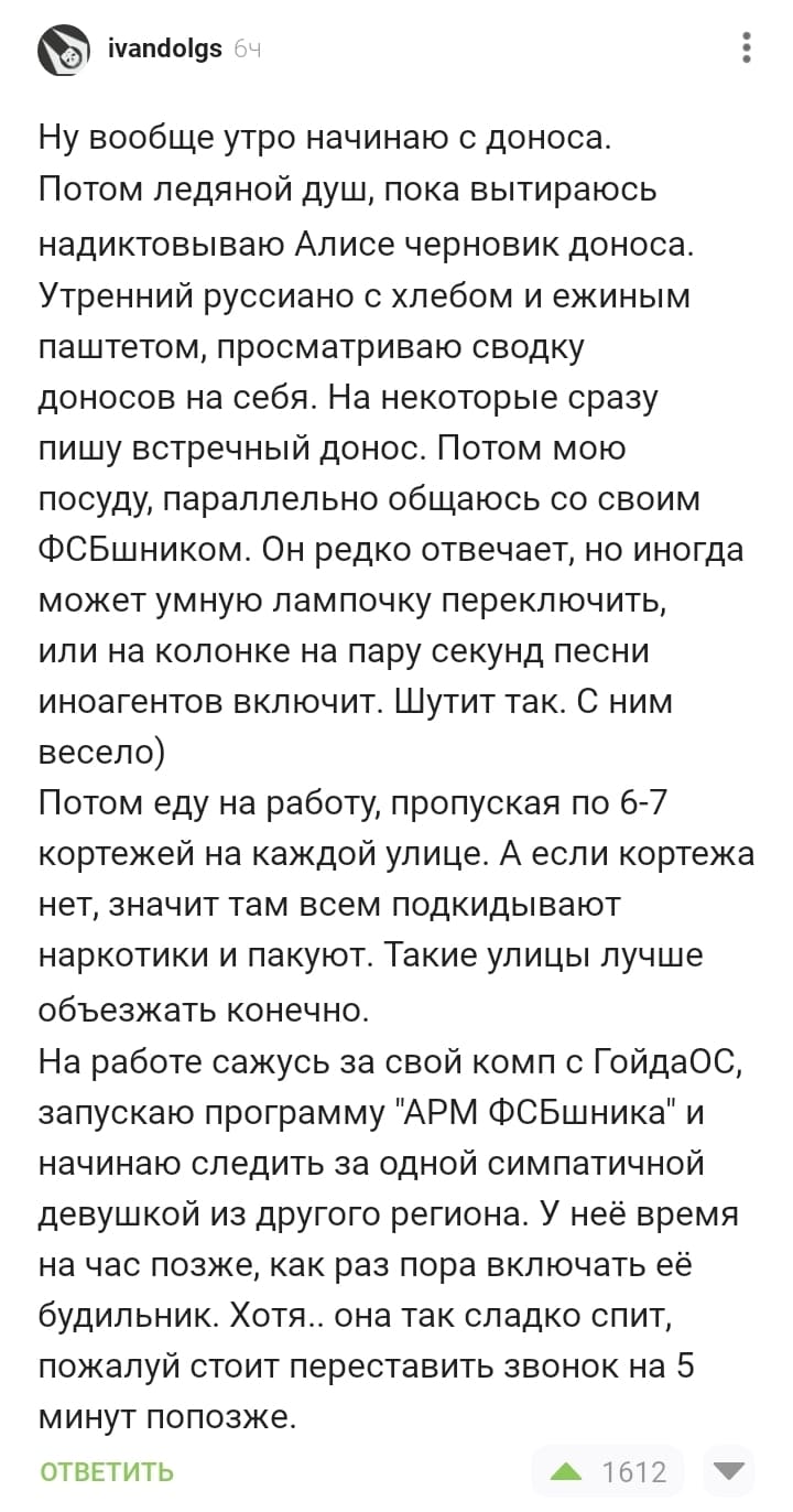 Идёт он в 318 кабинет, там такая же картина — никто на него внимания не обращает. Опять покашлял-потопал, один из сотрудников к нему обратился. Шпион по новой всё рассказал.